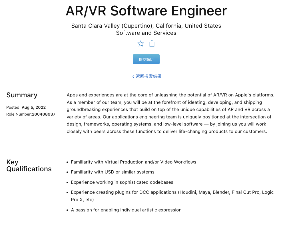 此外,苹果还希望招聘一位得力干将,希望他能够“把与苹果的UI框架、人机界面设计师和系统能力团队结合在一起”,解决3D应用中的问题。