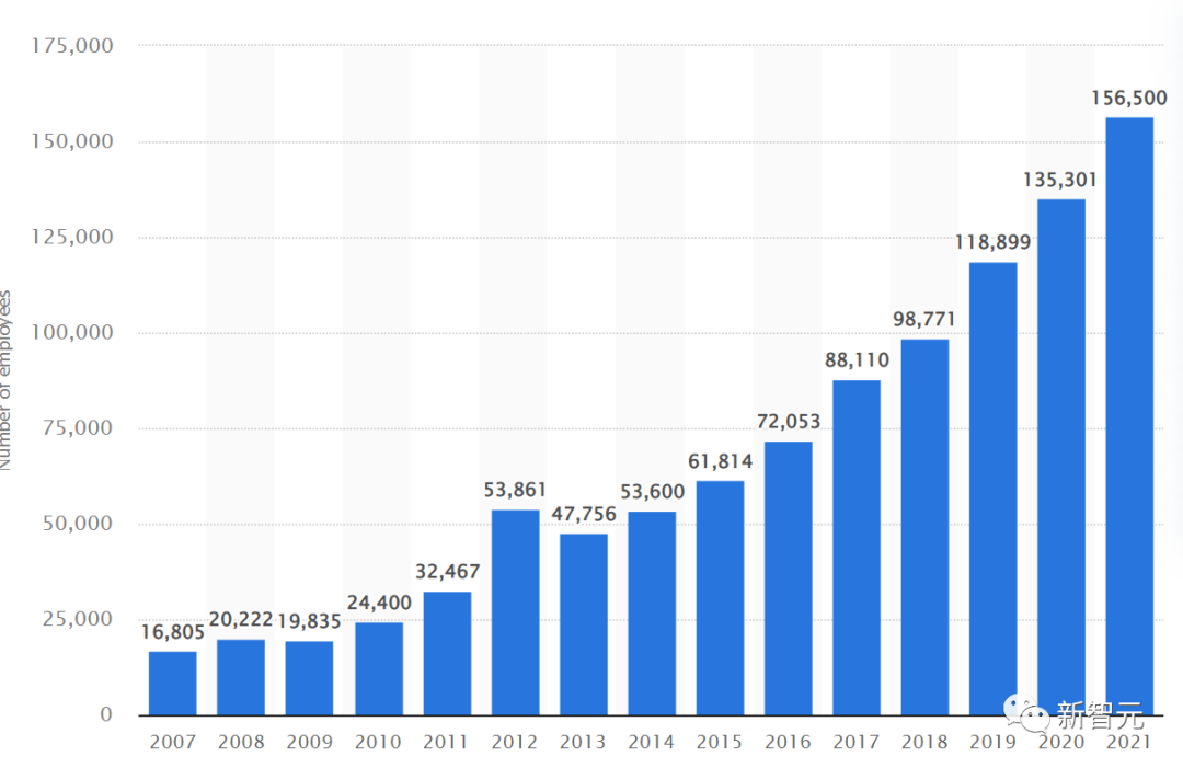 截至今年第三季度,谷歌一共雇用了186779名全职员工,外包合同工的数量也差不多是这个数字。