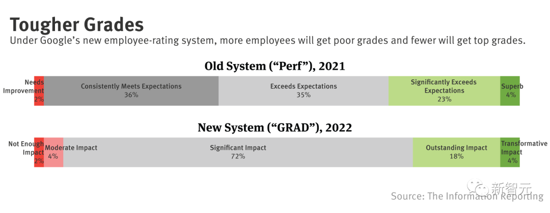 在新系统下,谷歌估计有6%的全职员工将会面临低绩效评级,而以前只有2%,这部分员工有更大的可能进入所谓「需要改进」的低绩效范围。