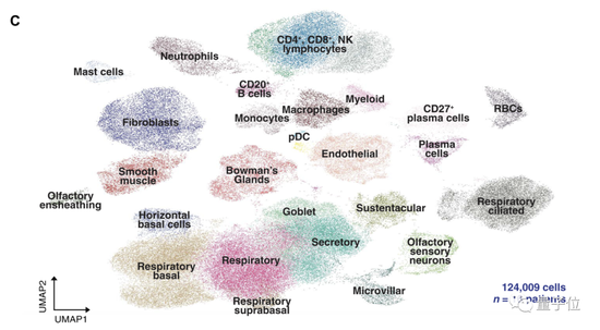 除此之外,对于嗅觉失灵的人而言,他们嗅觉上皮细胞的感觉神经元,以及参与上皮细胞更新的转录物亚群都有所减少。