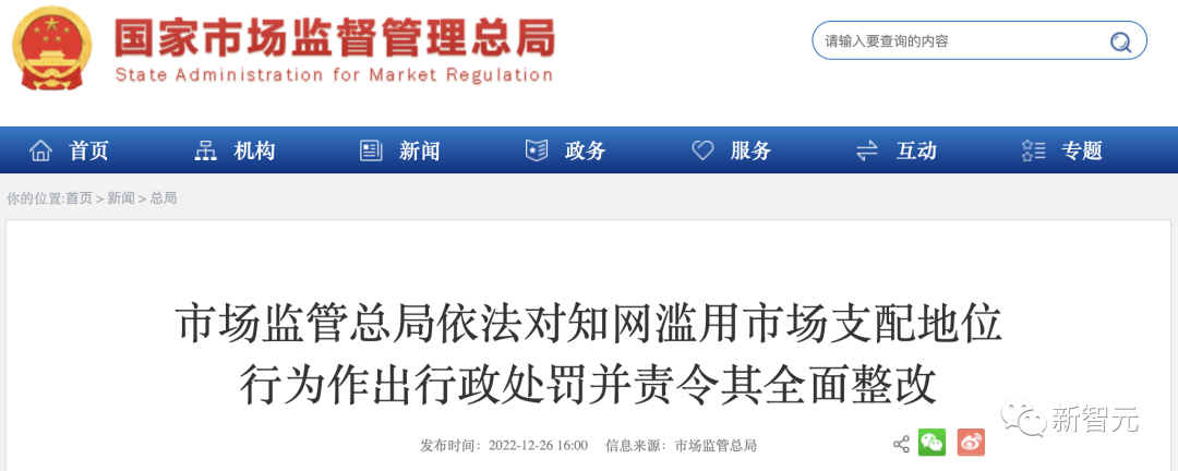 昨天,国家市场监管总局发布公告:确认知网滥用市场支配地位,处以8760万元罚款(2021年中国境内销售额的5%),并要求全面落实整改。