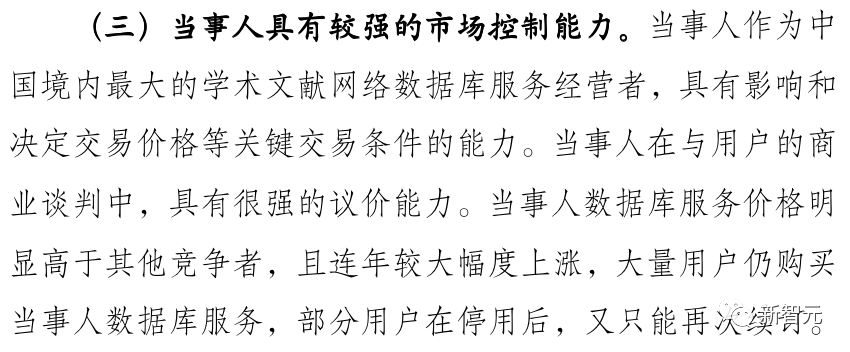 另外,知网具有较强的市场控制能力,较强的财力和先进的技术条件,用户对知网高度依赖,知网在学术不端检测、论文查重服务等关联市场具有显著优势。