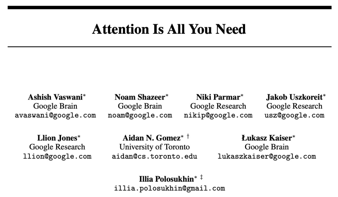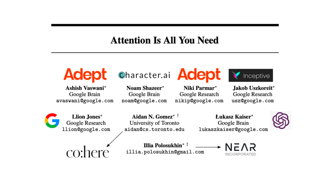 这篇论文提出的 Transformer 架构成为后来许多 AI 模型的基础。目前,这篇发表 5 年的论文引用量已破 6 万。现在这些作者所在的机构发生了很大变化: