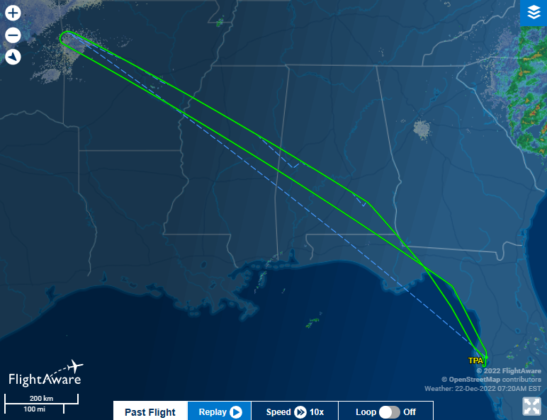 目前看到最离谱的是下面这架航班:从坦帕飞往丹佛,因为丹佛地勤全罢工了,最后已经到了目的地,又不得不调头返回坦帕……