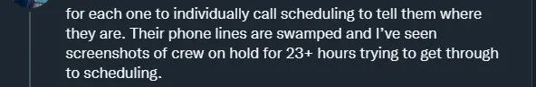 在各地暴风雪导致大面积延误+取消的情况下,西南员工需要进行大量的人工追踪+手动修改。最终导致人力不足,无法及时追踪航班最新情况和进行对应修改。
