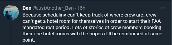 因为西南的后台系统严重瘫痪,四散各地的机组人员不光没有办法返工,连酒店房间都没法开;