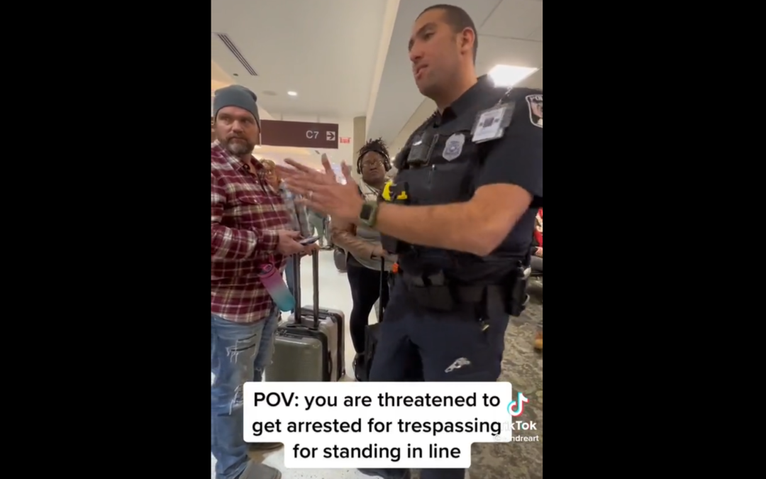 一条发布于12月27日晚间的视频显示,一位警察威胁那些因为航班取消无处可去的乘客,“西南打电话叫我们来,你们没有合法的机票,如果再不走,我就要逮捕你。”