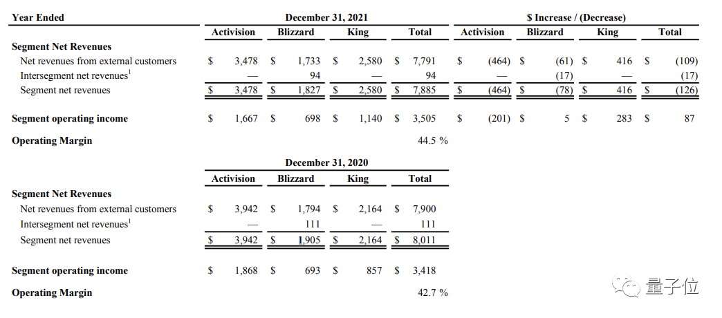 从财报数据看,暴雪2021全年收入18.27亿美元,比2020年下降4%,但经营利润却略高于2020年。