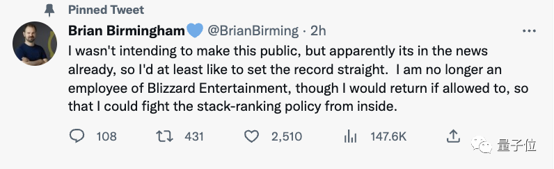 值得一提的是,就在这边国服关闭的同时,那边魔兽世界经典版的联合首席开发人员Brian Birmingham退出暴雪,以抗议员工审查系统。