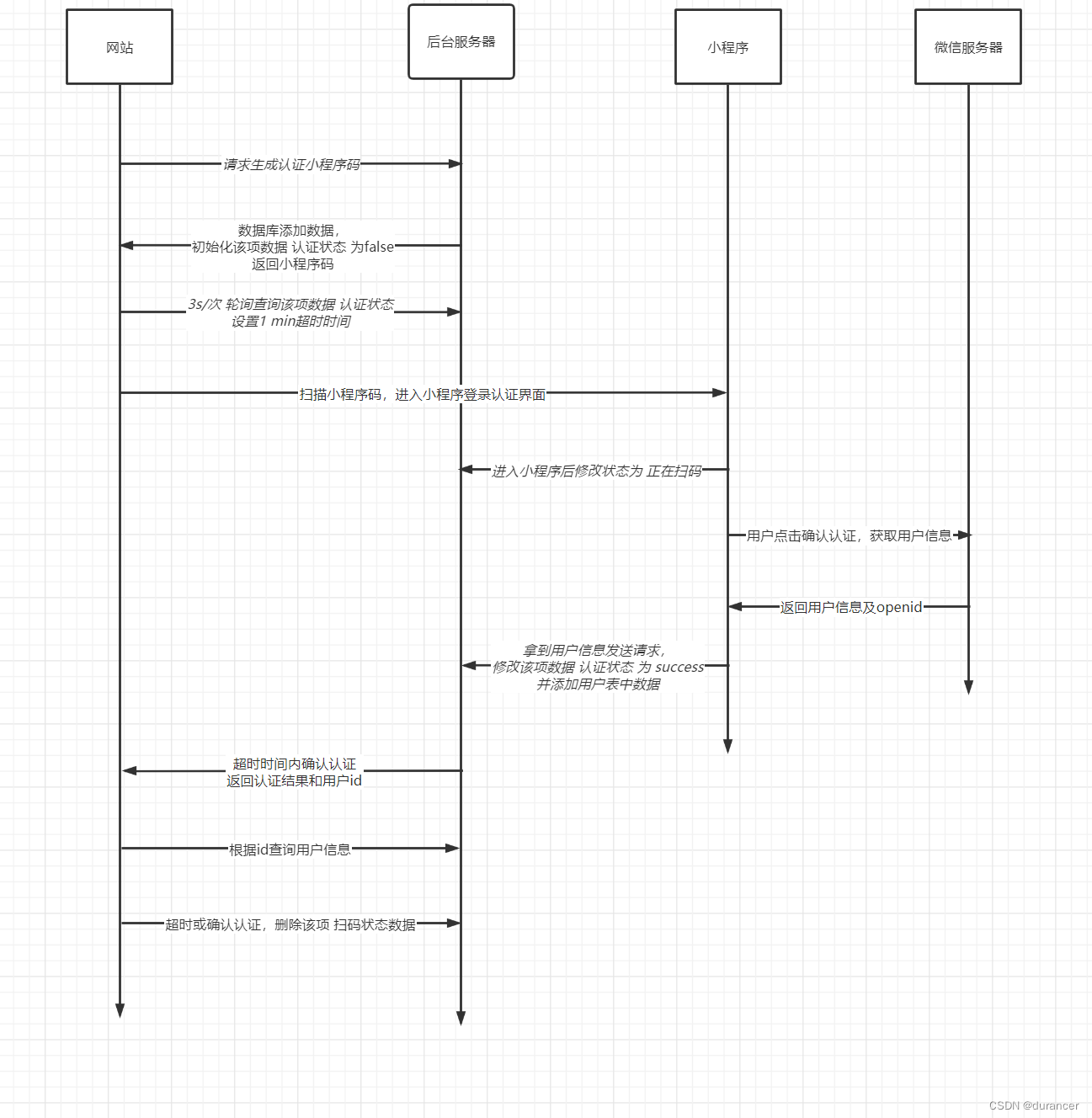 - 之后网站端根据 scene值 轮询 该条数据的认证状态。用扫码状态作为是否继续轮询的依据
