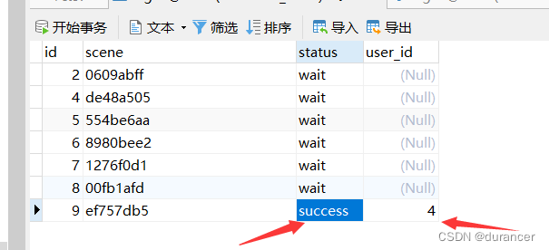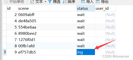 同样,根据scene值,修改登录表
