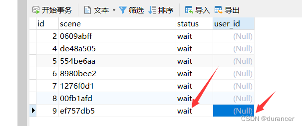 此时user_id是没有值的,并且状态是等待扫码。