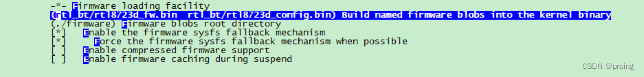 firmware blobs to build into the kernel binary # 指定须要载入的固件