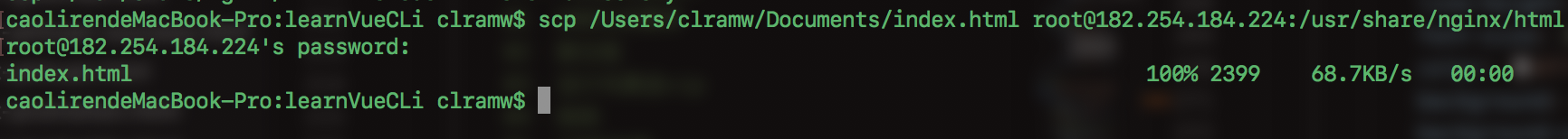 scp + 本地文件地址 + 用户名@你的ip:/远程文件夹地址