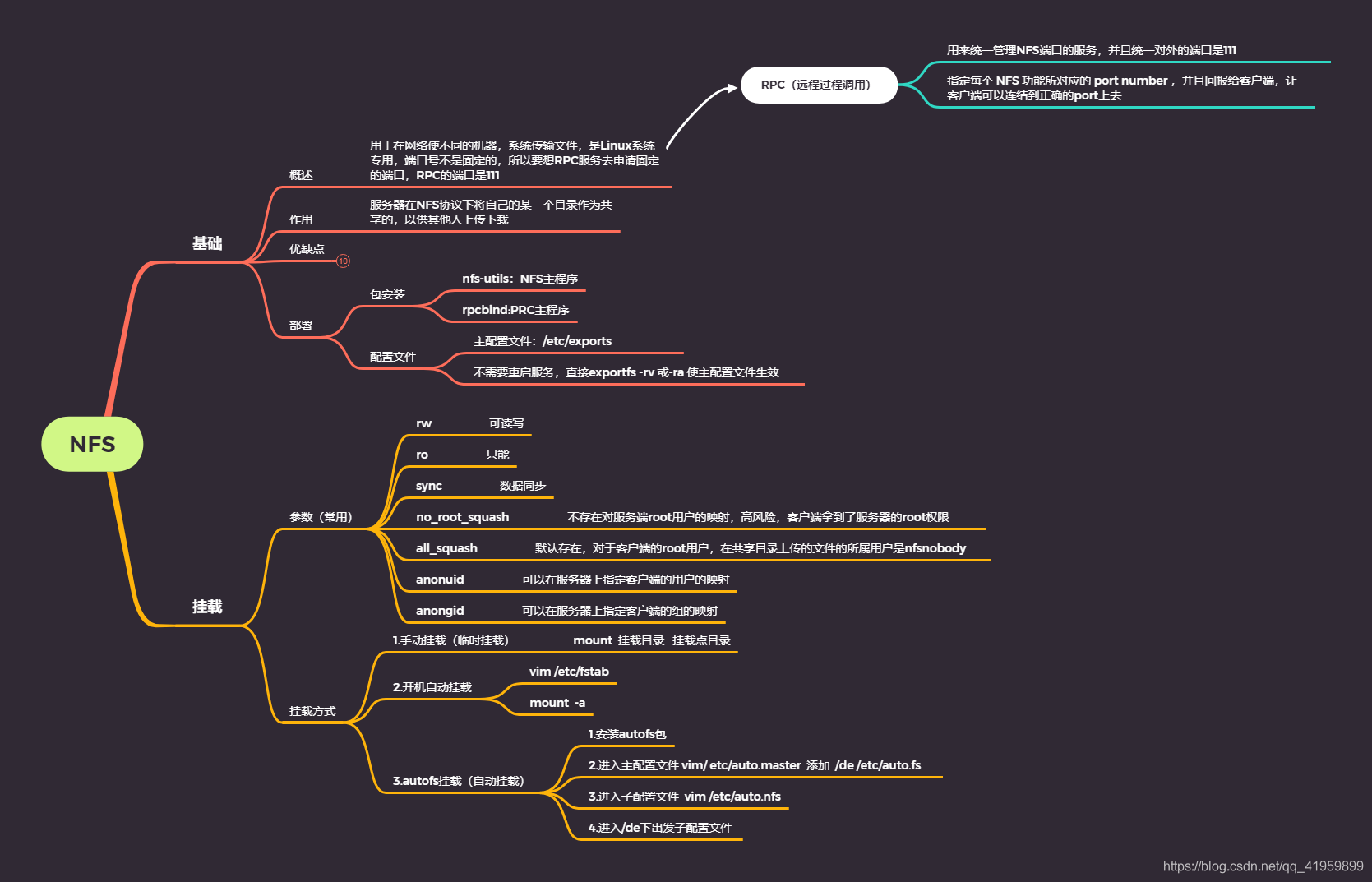 RPC(Remote Procedure Call)即远程过程调用。RPC 最主要的功能就是在指定每个 NFS 功能所对应的 port number ,并且回报给客户端,让客户端可以连结到正确的port上去