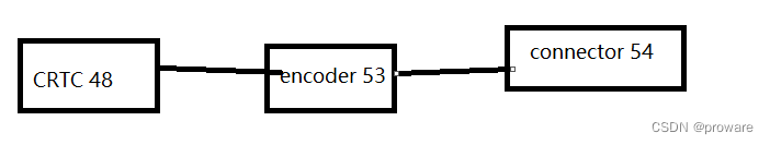 在链接显示器之前,存在图示几个设备crtc 、encoder、connector,modetest 命令即是对这几个设备进行参数控制,包括:
