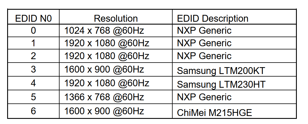 这种情况下,用户可以将EDID写入到EEPROM中,但只支持一个。可以覆盖上述7个EDID中的第一个。