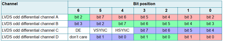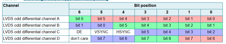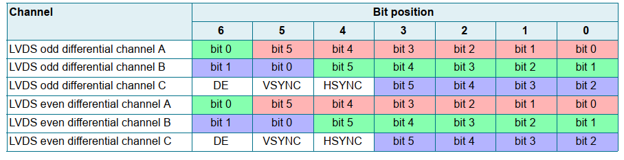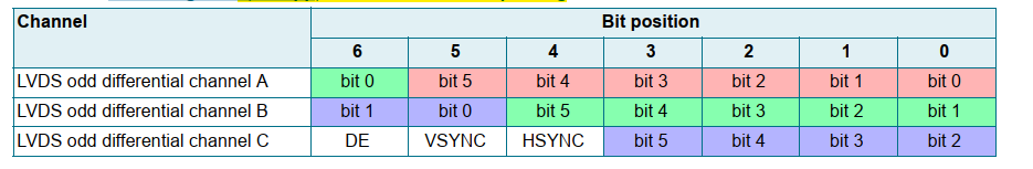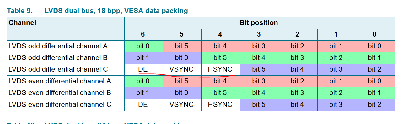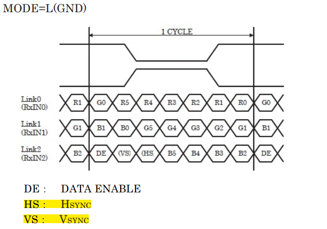 即RGB各6bit,依次顺序传递。而后是同步和数据使能信号