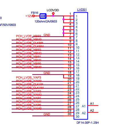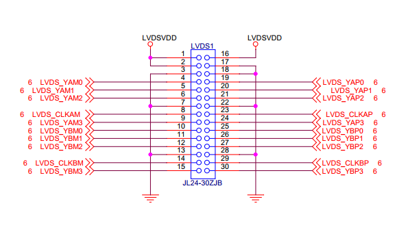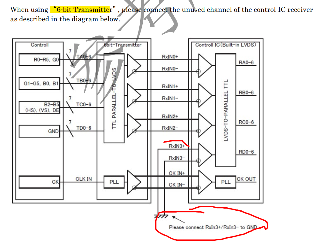 4) 数据差分线的链接。有些屏,在采用6bit时,需要将最后一组差分线接地。