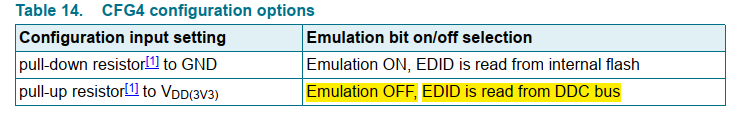 2)EDID即可以来自3460,也可以来自屏幕。来自3460时,有默认值,也可以由EEPROM进行配置。 此处我们可以修改管脚,采用3460的EDID进行验证。