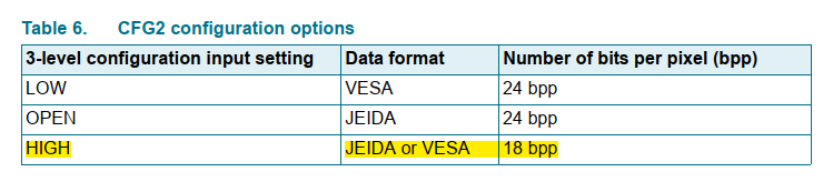 3)数据位宽,即6bit还是8bit。 屏幕有管脚配置,需要确认此管脚的电平状态。