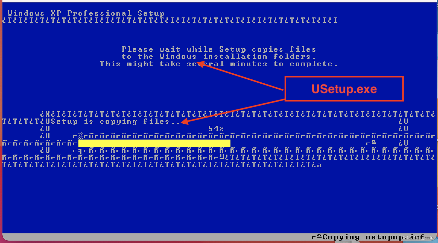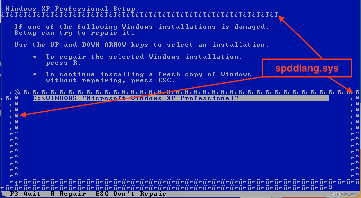 注意,如果是中文版要编译“D:\srv03rtm\base\ntsetup\textmode\spddlang\fe”的版本,不然会乱码;这个程序只负责上图的边框部分、特殊字符、背景字体等,核心内容部分不在这里处理。