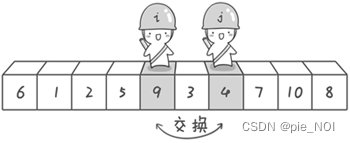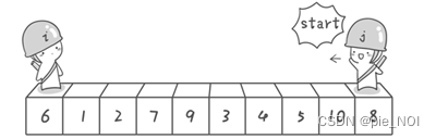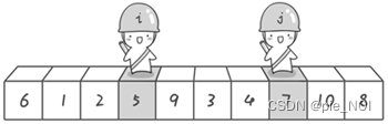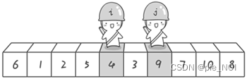 初始:基准数6,左哨兵位置0,右哨兵位置9