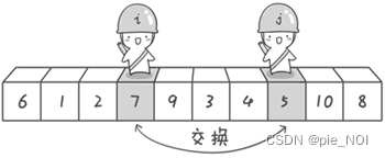 找到右边第1个小于基准数的元素,左边第1个大于基准数的元素