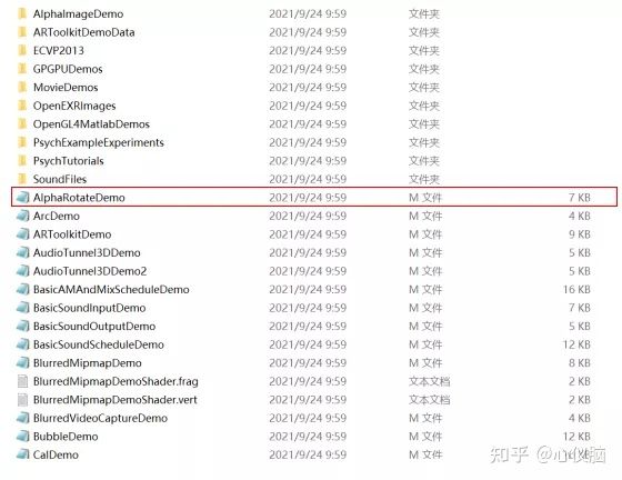 在命令窗中输入‘help PsychDemos’,可以检索PTB工具箱中的demo,对照说明就能了解这些demo的内容。找到PTB安装目录下名为 ‘PsychDemos’ 文件夹,打开会发现这些demo的源码文件,数量众多,应有尽有。