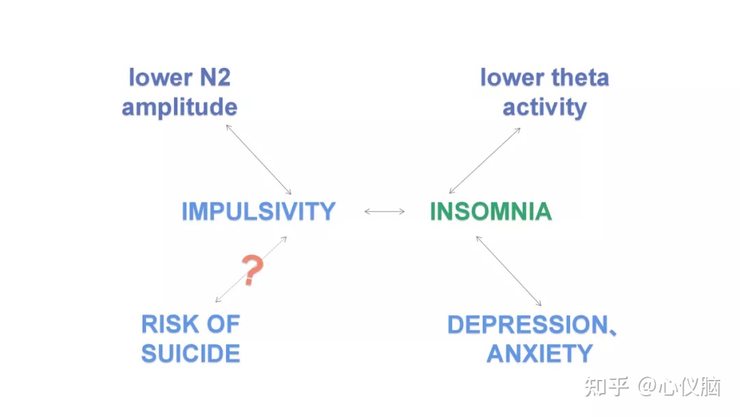 本研究中也获取了被试在冲动性、抑郁、焦虑量表上的得分,显示与睡眠障碍有相关关系。不过,这些精神机能上的障碍与行为、电生理活动之间的层级因果关系还需要进一步探索