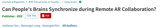 近日,韩国汉阳大学的研究者在IEEE Transactions on Visualization and Computer Graphics (IF=6.5)期刊发表题为“Can People’s Brains Synchronize during Remote AR Collaboration?”的研究论文,旨在探索远程AR环境中合作互动的脑同步机制。