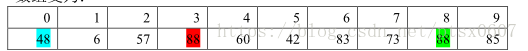 到上一个坑a[0]中。a[0]=a[8]; i++; 这样一个坑 a[0]就被搞定了,但又形成了一