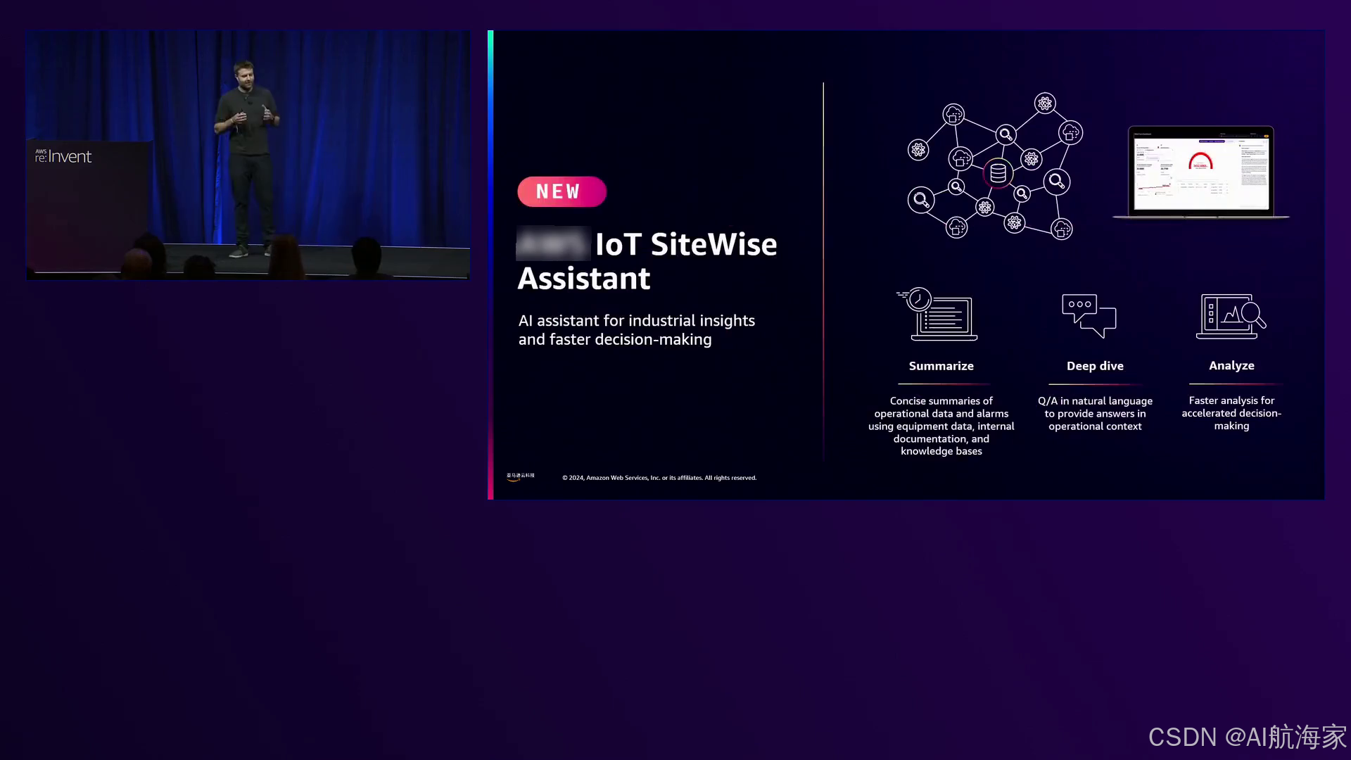 关键字: [Amazon Web Services re:Invent 2024, 亚马逊云科技, SiteWise, Internet Of Things Data, Artificial Intelligence Systems, Multimodal Learning, Connected Product Experiences, Autonomous Systems]