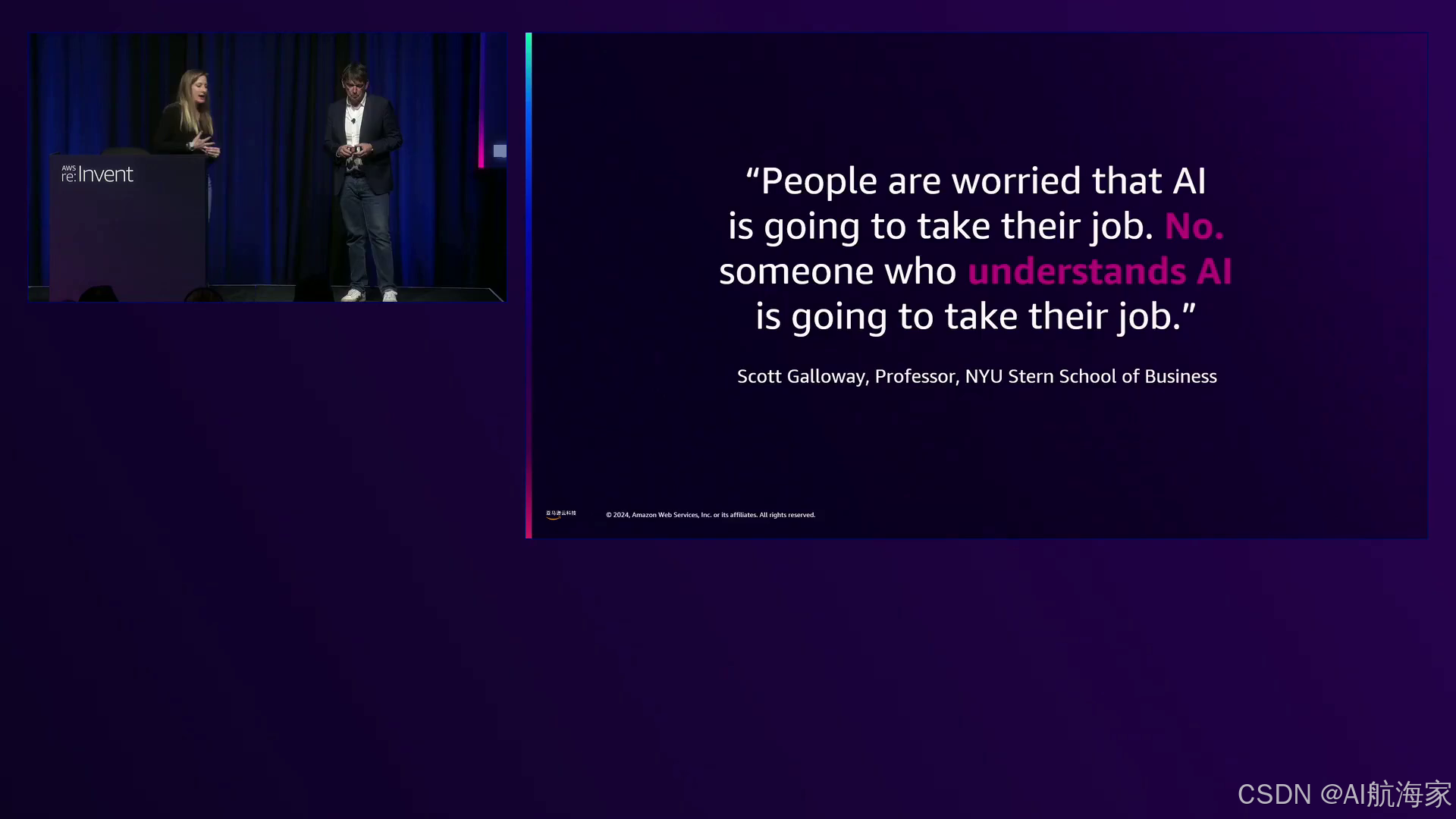 在科技进步重塑生产力格局的世界中,生成式人工智能(generative AI)的出现成为一股变革力量,有望彻底改变我们的工作方式。在这场革命的前沿,亚马逊云科技作为一个开拓性的实体,热情拥抱了生成式人工智能的潜力。在备受期待的亚马逊云科技 re:Invent 2024活动上,两位杰出的演讲者Siggi和Brittany登台分享了他们的见解和经验,阐明了生成式人工智能、生产力、伦理和工作场所变革管理之间的错综复杂关系。