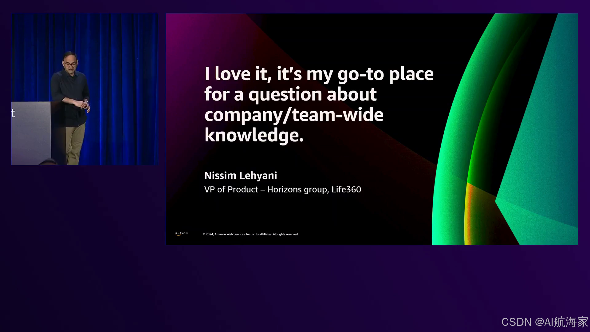 Naveen分享了一个令人信服的轶事,来自Life360今年早些时候加入的产品副总裁。这位副总裁赞赏了Amazon Q Business的知识库效用,归功于它在远程工作环境下(面对面互动有限)为他提供了无缝的入职体验。