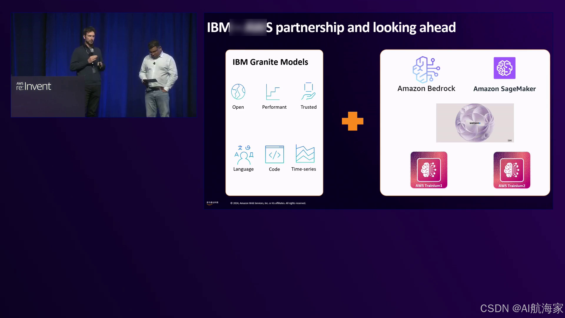 来自IBM的Armani分享了IBM通过Watson X平台专注于生成式AI的见解。他解释说,Watson X由三个核心组件组成:AI Studio提供工具、模型和能力来创建genAI解决方案;Watson Next Data是一个智能数据湖房,集成了数据和metadata;以及一个用于监控、观察和确保合规性的治理组件。Armani强调IBM与亚马逊云科技的合作关系,旨在使Watson X能够在亚马逊云科技 AI芯片上本地运行,并通过亚马逊云科技服务提供IBM的Granite基础模型。IBM的Granite模型专为企业用例而设计,重点是披露用于预训练和训练的整个数据集,确保法律合规性和版权遵从性,并提供完整的模型可识别性。Armani对AI代理的发展表示兴奋,这些代理结合了多个LLM和SLM,并强调IBM致力于优化这些代理系统的成本效益和可扩展性。IBM正与亚马逊云科技密切合作,将Watson X与Neuron SDK集成,并在Trinium和Inferentia实例上运行他们的模型。
