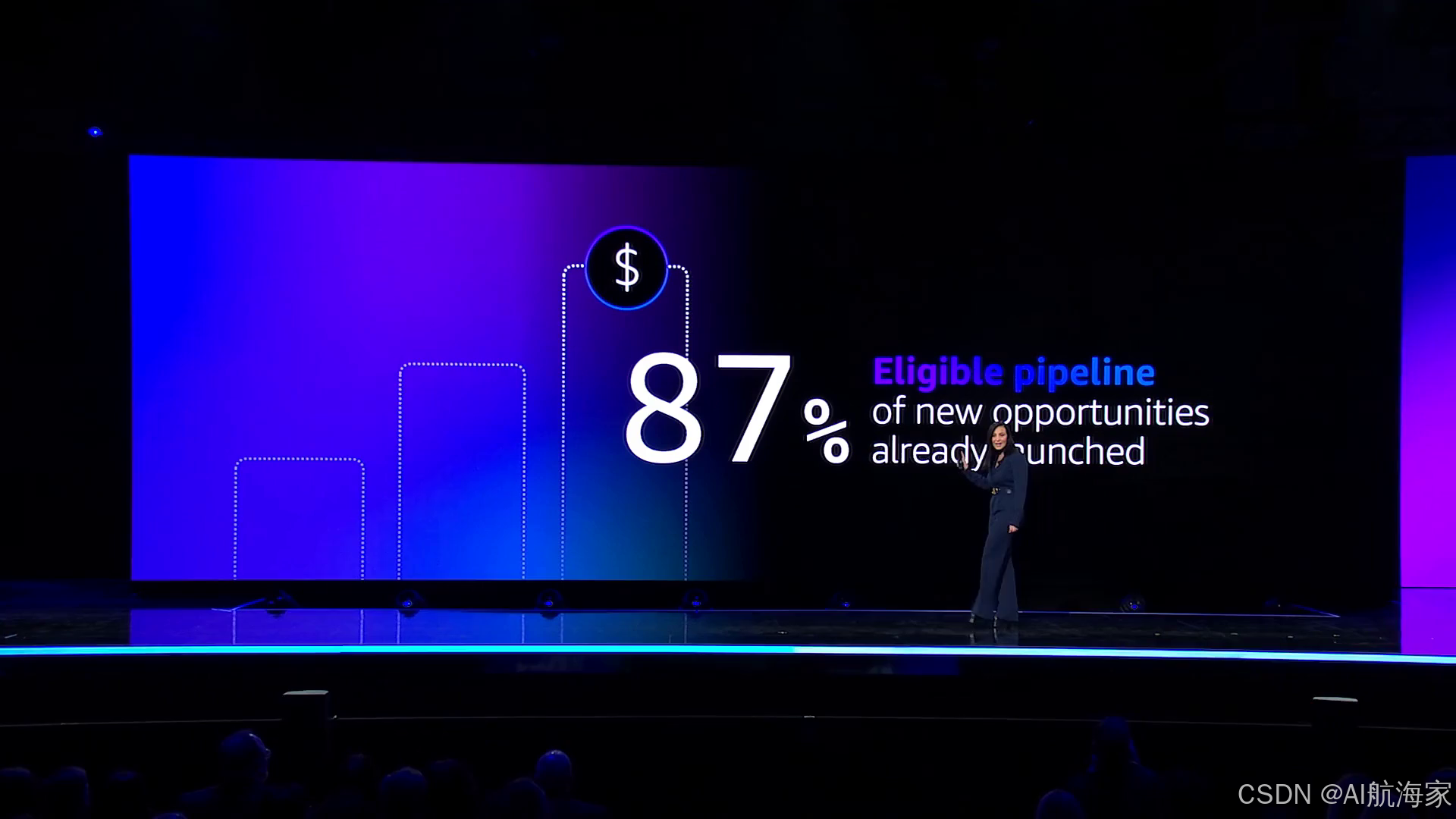 Ruba表示,亚马逊云科技专注于为合作伙伴创造价值,使他们能够与客户共同创造价值。她承诺与会者将获得有关亚马逊云科技和合作伙伴如何通过金融服务、媒体、娱乐和公共部门等行业的解决方案帮助客户开拓新领域的见解。此外,她还强调了创造新联系、产生以前无法获得的机会,以及通过由生成式AI驱动的定制解决方案开发新的使用案例。