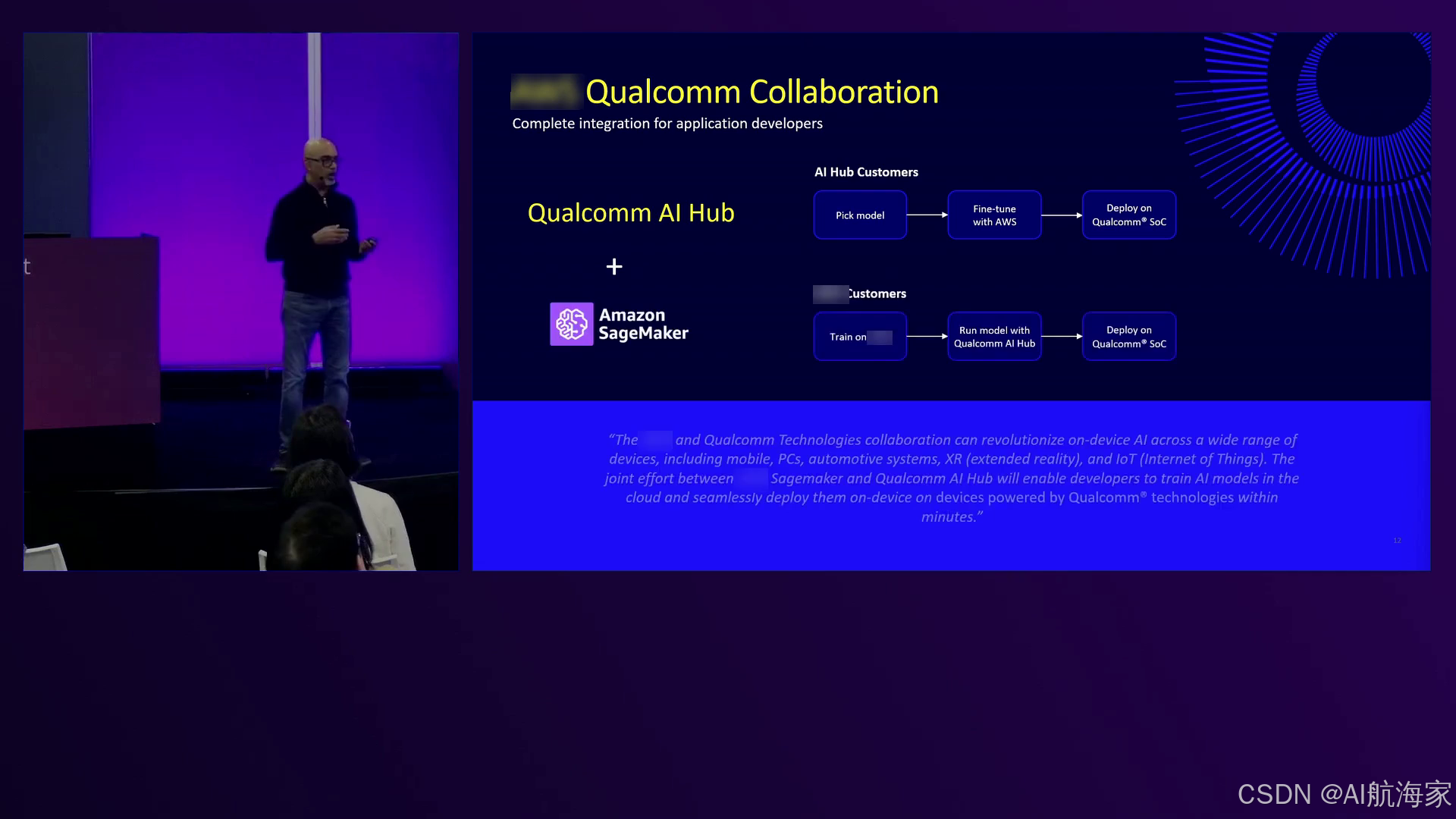 关键字: [Amazon Web Services re:Invent 2024, 亚马逊云科技, Qualcomm AI Hub, Edge Ai Capabilities, On-Device Development, Model Fine-Tuning, Developer Journey, Qualcomm Ai Hub, Automotive Use Cases, Contextual Awareness, Data-Driven Pipeline, Industry-Specific Toolchains, Cloud-Edge Integration]