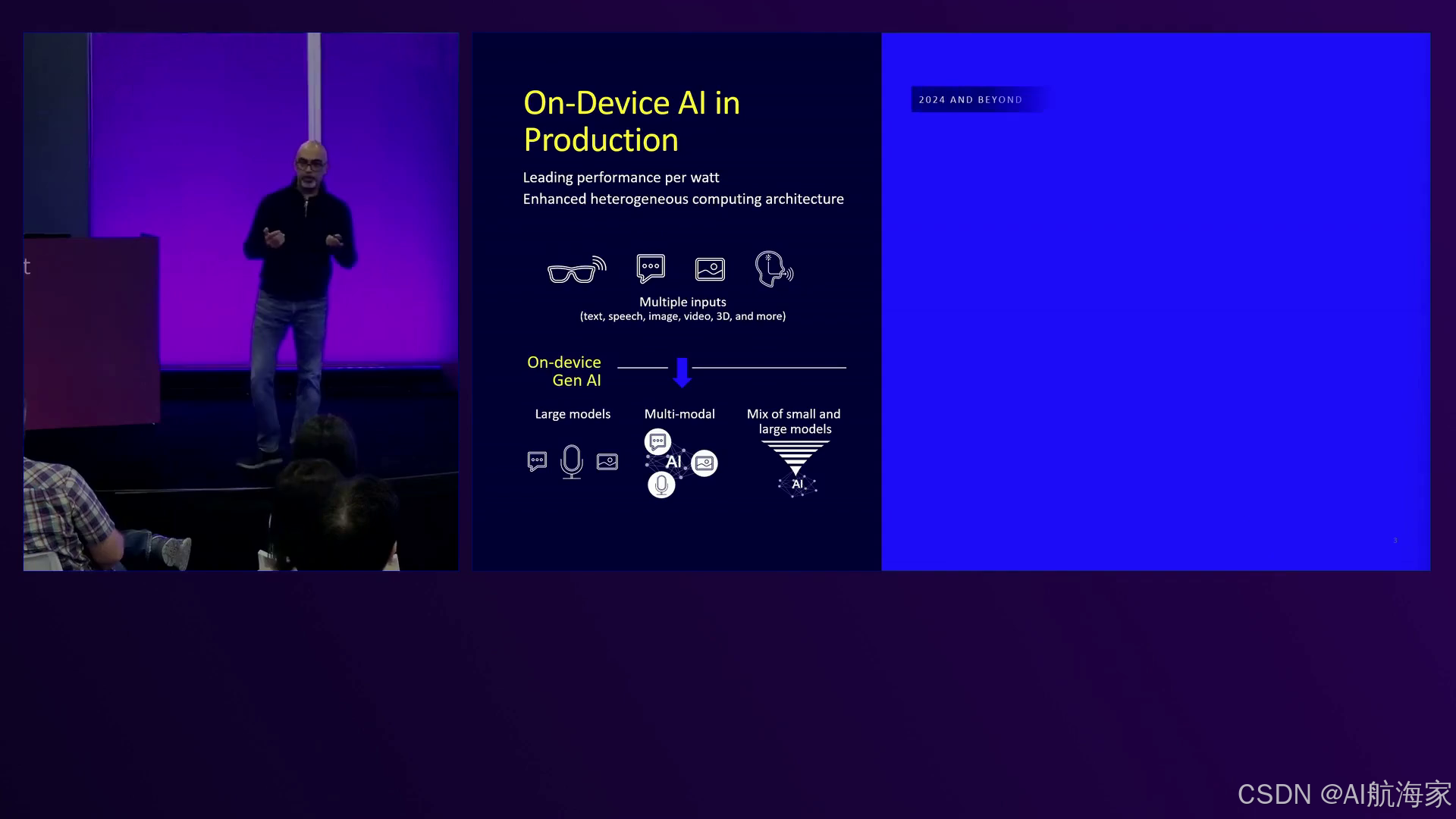 Palgat强调,现代人工智能模型已经发展成为庞大的模型,支持大量参数和模态,包括视觉、文本、语音、激光雷达、雷达和温度等。高通以其卓越的每瓦特性能而闻名的异构计算平台,已成为跨物联网、汽车、移动电话、计算平台和扩展现实(XR/VR)应用等多个行业的默认设备人工智能平台。
