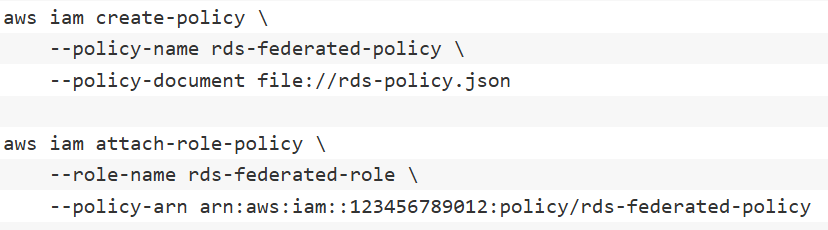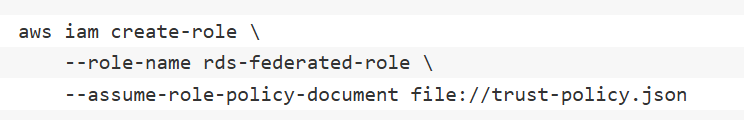 | iamRoleArn | 是 | 要承担的IAM角色ARN | arn:aws:iam::123456789012:role/rds-federated-role |