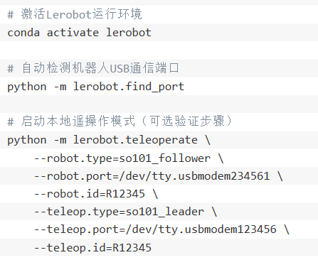 在本地开发环境中连接Lerobot SO-101机械臂: