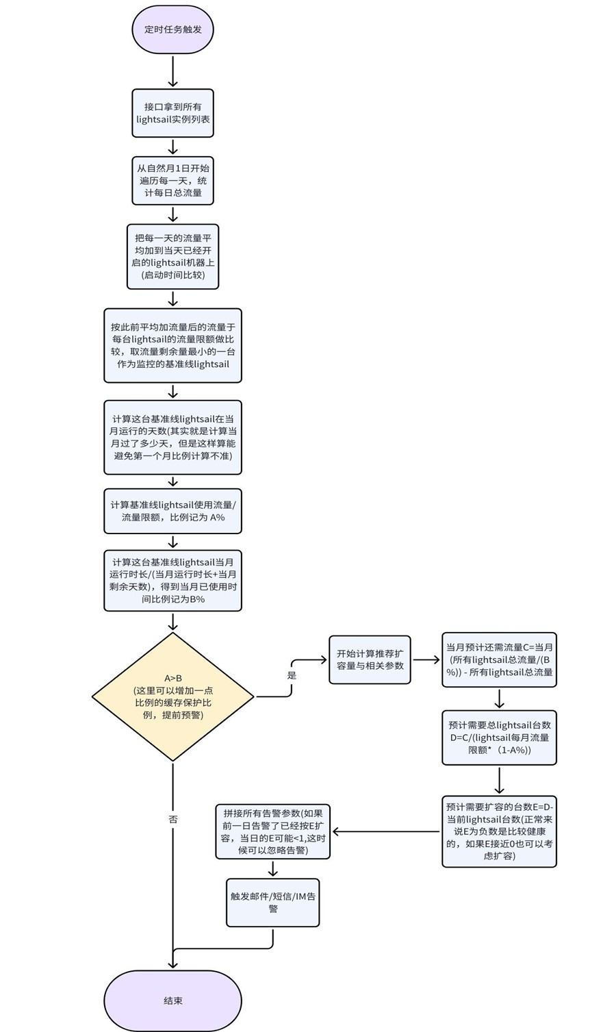 自动扩容逻辑:当月运行时长最久实例的剩余流量 x (区域相同lightsail的数量 +扩容数量)= 当月剩余流量池