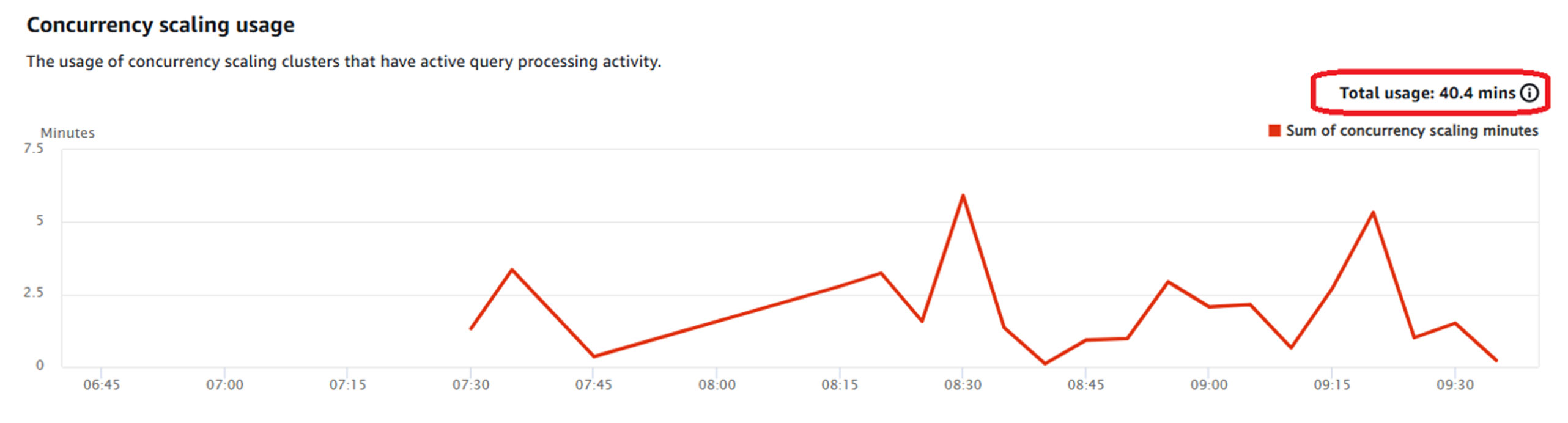 例如,以下的示例中并发扩展的总时长是40分钟(1小时),因此未额外收费。