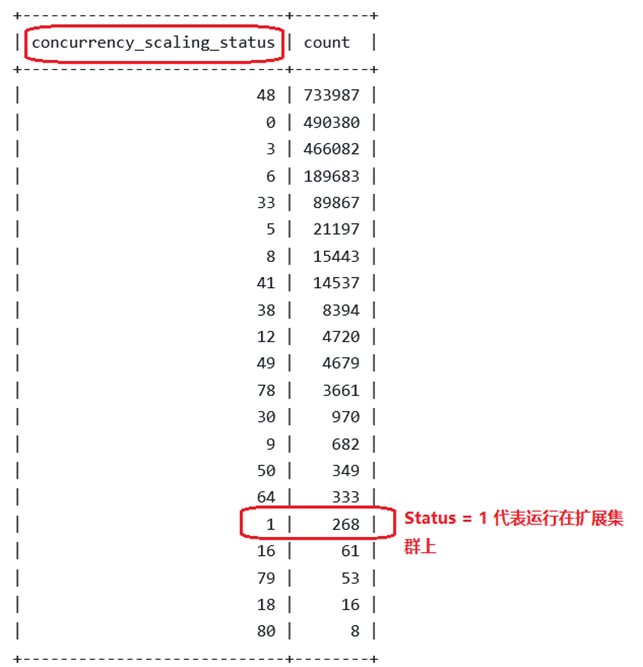 可以通过以下脚本来检查scaling status (status = 1 代表语句成功运行在扩展集群上):