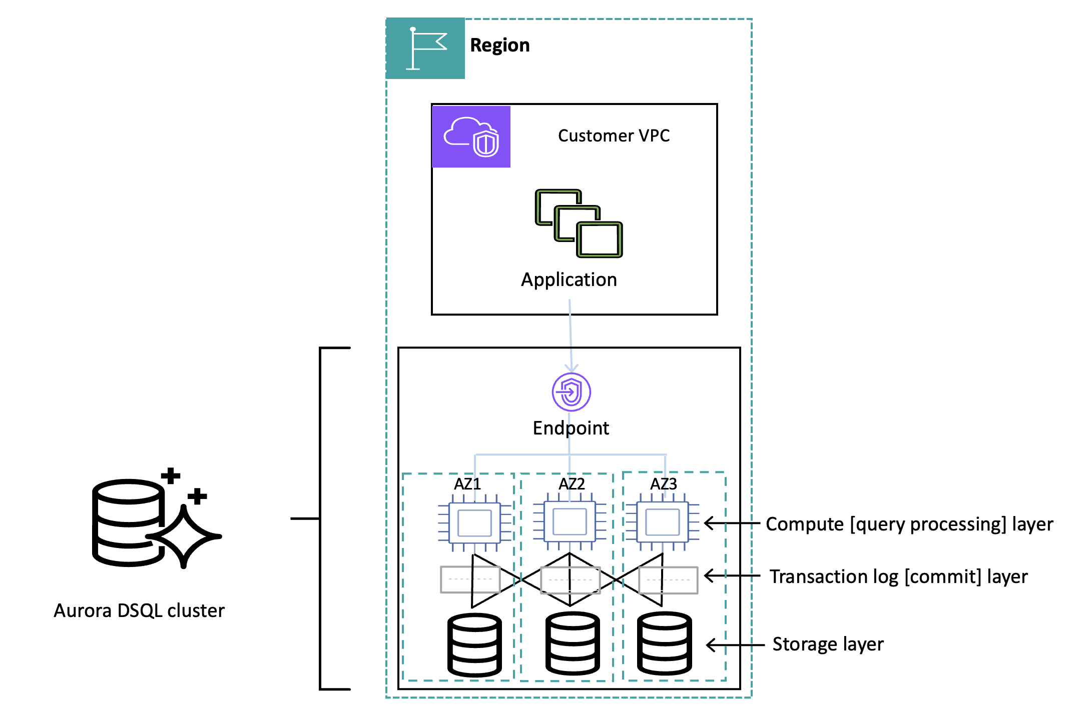 下图说明了单区域部署中的 Amazon Aurora DSQL 高可用集群拓扑图。