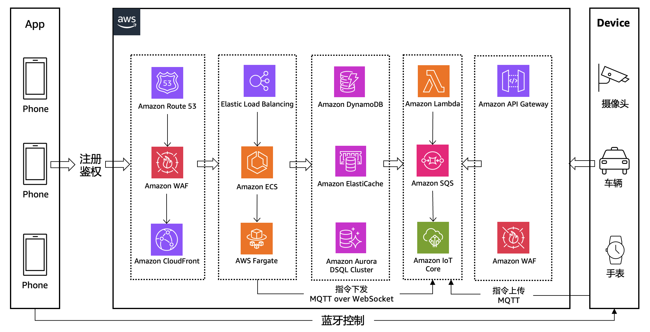 针对上述痛点,我们建议将这些场景迁移至 Amazon Aurora DSQL(分布式 SQL 数据库),核心思路是 “以分布式架构匹配制造数据的高并发、大容量特性,通过托管式能力大幅度降低运维成本”,以下是架构设计细节:
