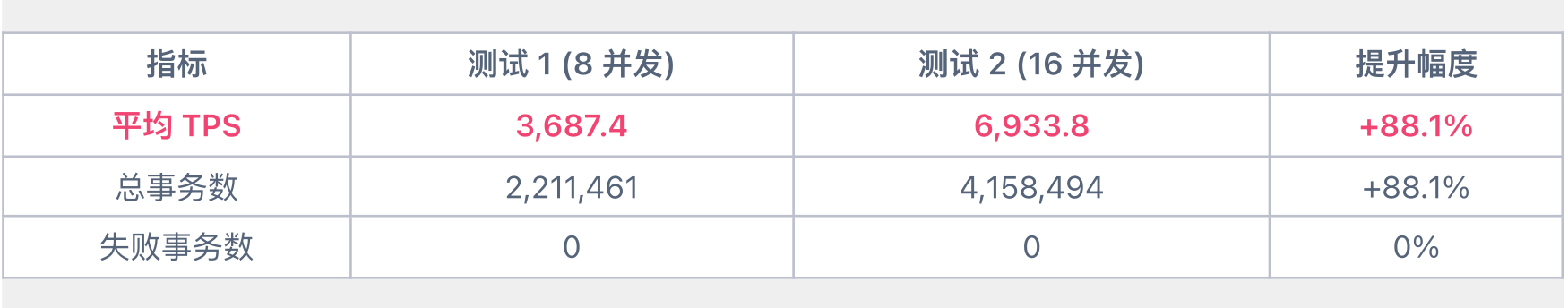 4. 资源利用充分: 8 核机器在 16 并发下仍有扩展空间。