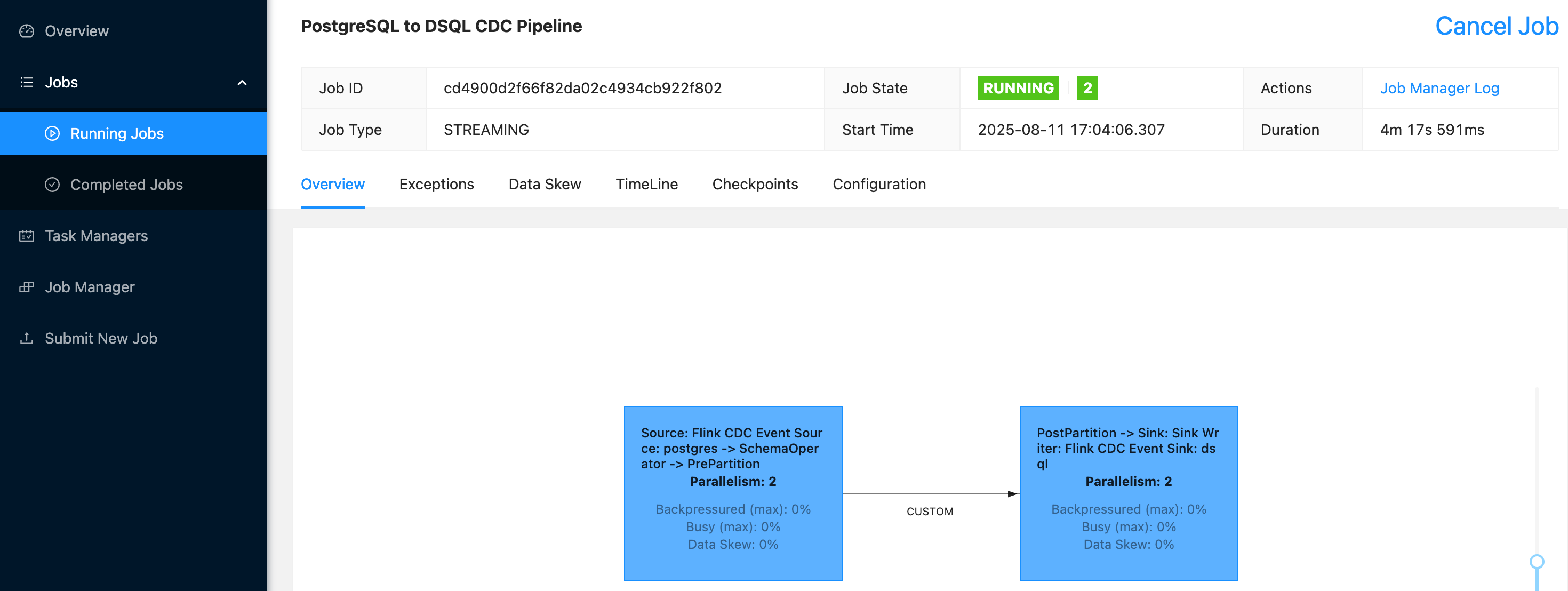 对于数据迁移,通过对Flink CDC进行改造,目前已支持从 MySQL 或者 PostgreSQL 迁移到 Amazon Aurora DSQL,包括表结构迁移,全量数据迁移和 CDC 同步。迁移完 Schema 和全量数据,CDC 同步没有延迟,即满足应用割接的条件,选择业务低峰进行连接地址切换即可。