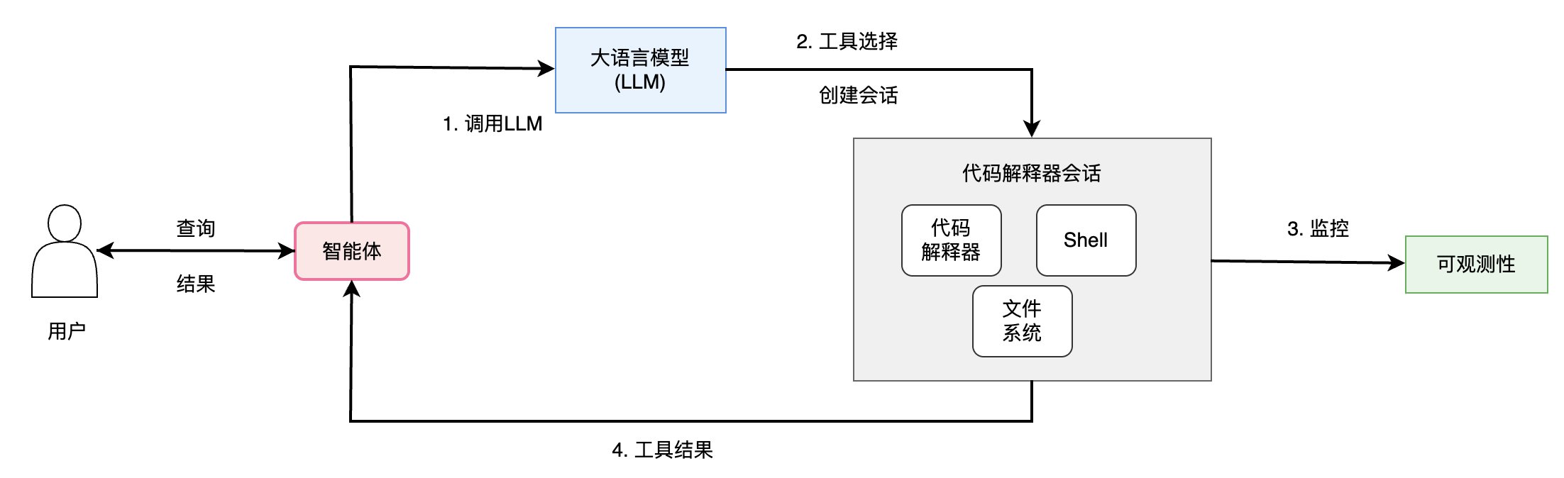 Agent应用需要单独的代码执行环境来执行特定任务。以企业数据分析Agent为例,业务分析师可以直接上传一个1GB的销售数据文件到应用平台,然后通过自然语言告诉Agent:”分析过去一年的销售趋势,找出表现最好的产品类别,并生成可视化报表”。Agent能够自动解析用户意图,并调用大型语言模型生成数据读取、处理及分析代码。它会多次启动沙盒环境执行这些代码,最终生成包含图表和统计分析的完整报告。尽管整个流程可能需要数小时的连续计算,但用户只需通过自然语言描述需求并进行必要的修正即可。所有复杂工作均由Agent、大型语言模型和沙盒工具协同完成,无需用户直接参与技术操作。