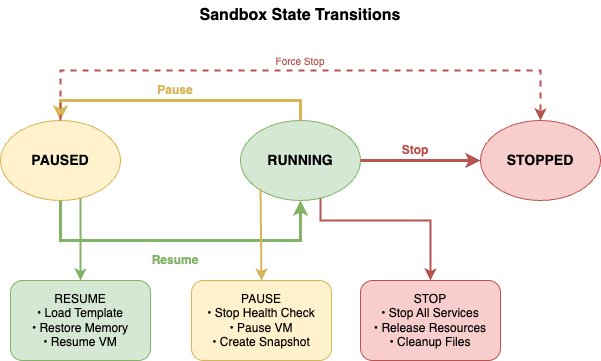 系统需要提供简化的管理机制,支持弹性扩展和运行时(Runtime)环境切换。开发者应该能够通过创建标准化模板,然后仅用一个template ID就能启动新的运行环境,大大简化部署流程。平台需要提供灵活的模板化管理能力,支持用户自定义代码运行环境模板,这种”先创建模板,再启动运行时”的标准化流程,不仅能提高部署效率,也能确保环境的一致性和可重复性。同时,系统应支持多沙盒并行运行,能够高效监控各个沙盒的运行状态,并在新物理机加入时自动实现负载均衡和资源调度。